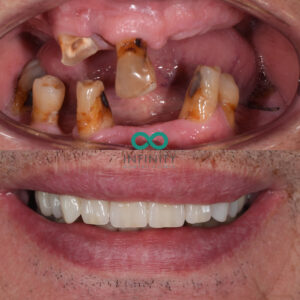 When he first came to our clinic, he was struggling with severely failing teeth—most of which were missing. For years, he’d relied on dentures, but they brought more frustration than relief. Many of you will understand the challenges dentures can bring: difficulties eating, speaking, and smiling with confidence. He wanted a smile that not only looked amazing but felt completely natural. He was clear about one thing—he didn’t want a smile that looked overly artificial or, as he put it, like he’d “been to Turkey for his teeth.” Instead, he wanted his individuality preserved, with teeth that were functional, aesthetic, and authentically his.