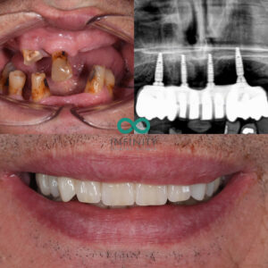 To achieve this, we placed four Straumann Dental Implants to support a full-arch replacement. This approach allowed us to create a secure, natural-looking smile tailored to him. The results are truly remarkable. From the pictures, you can see how this smile enhances his appearance while retaining his unique character.