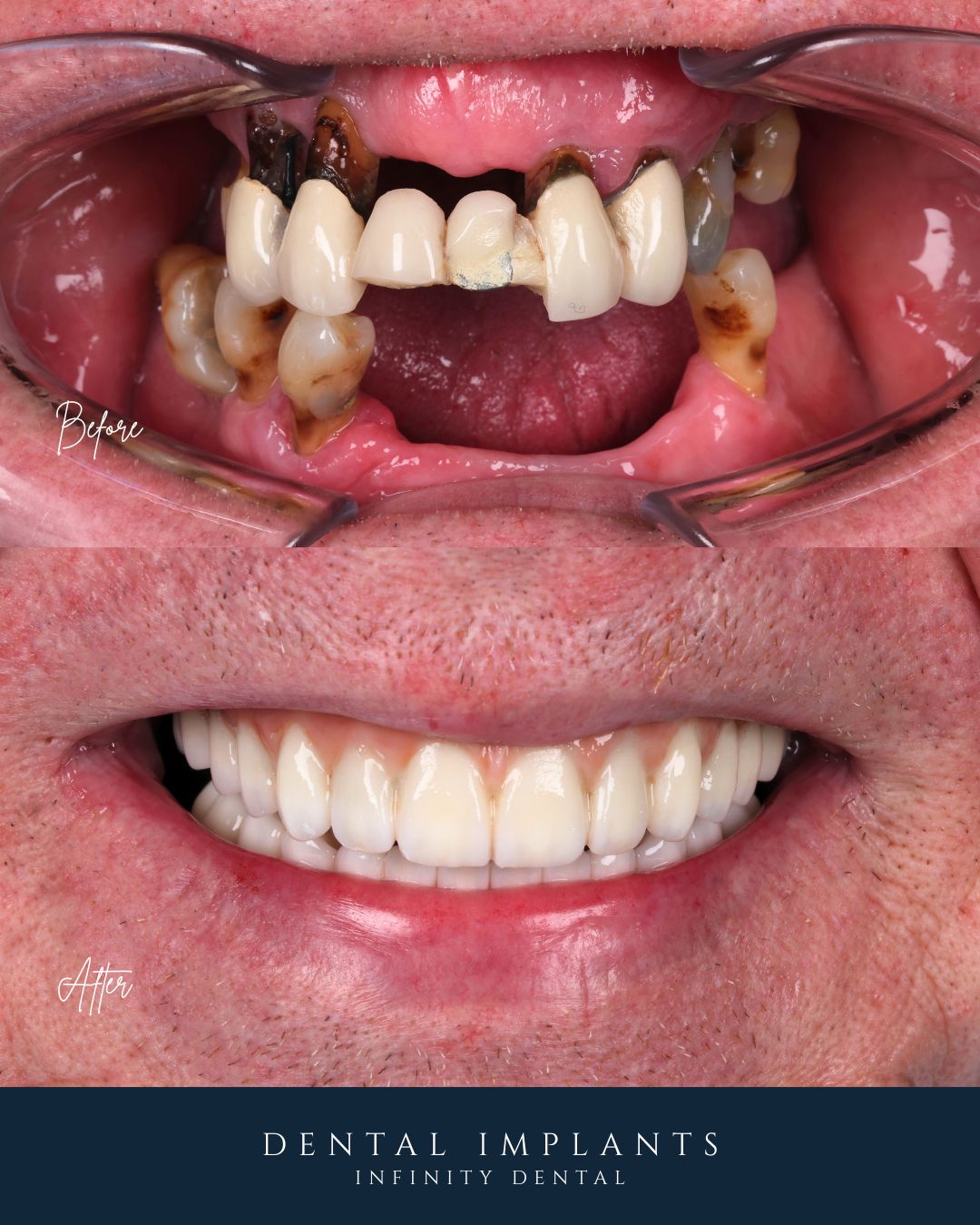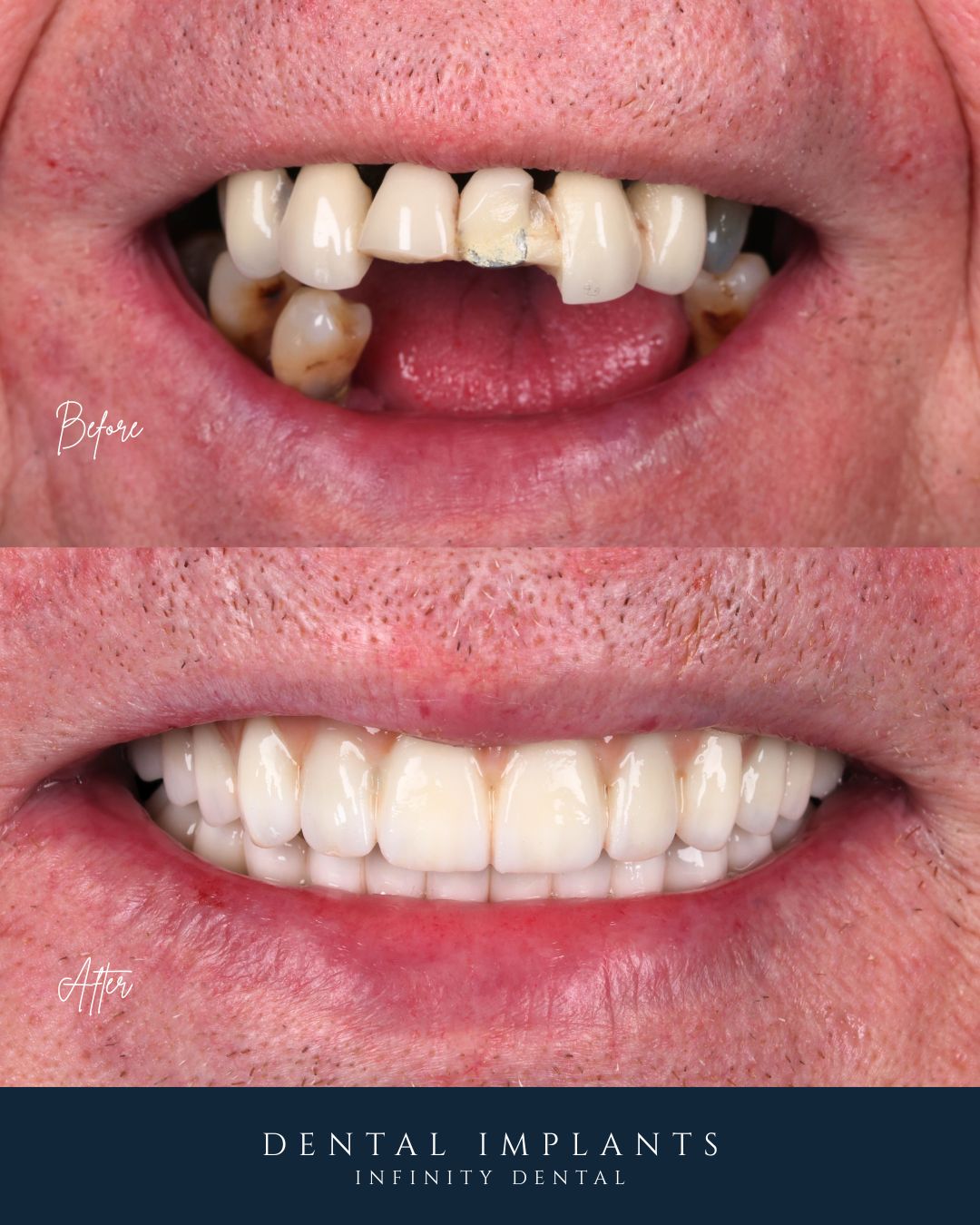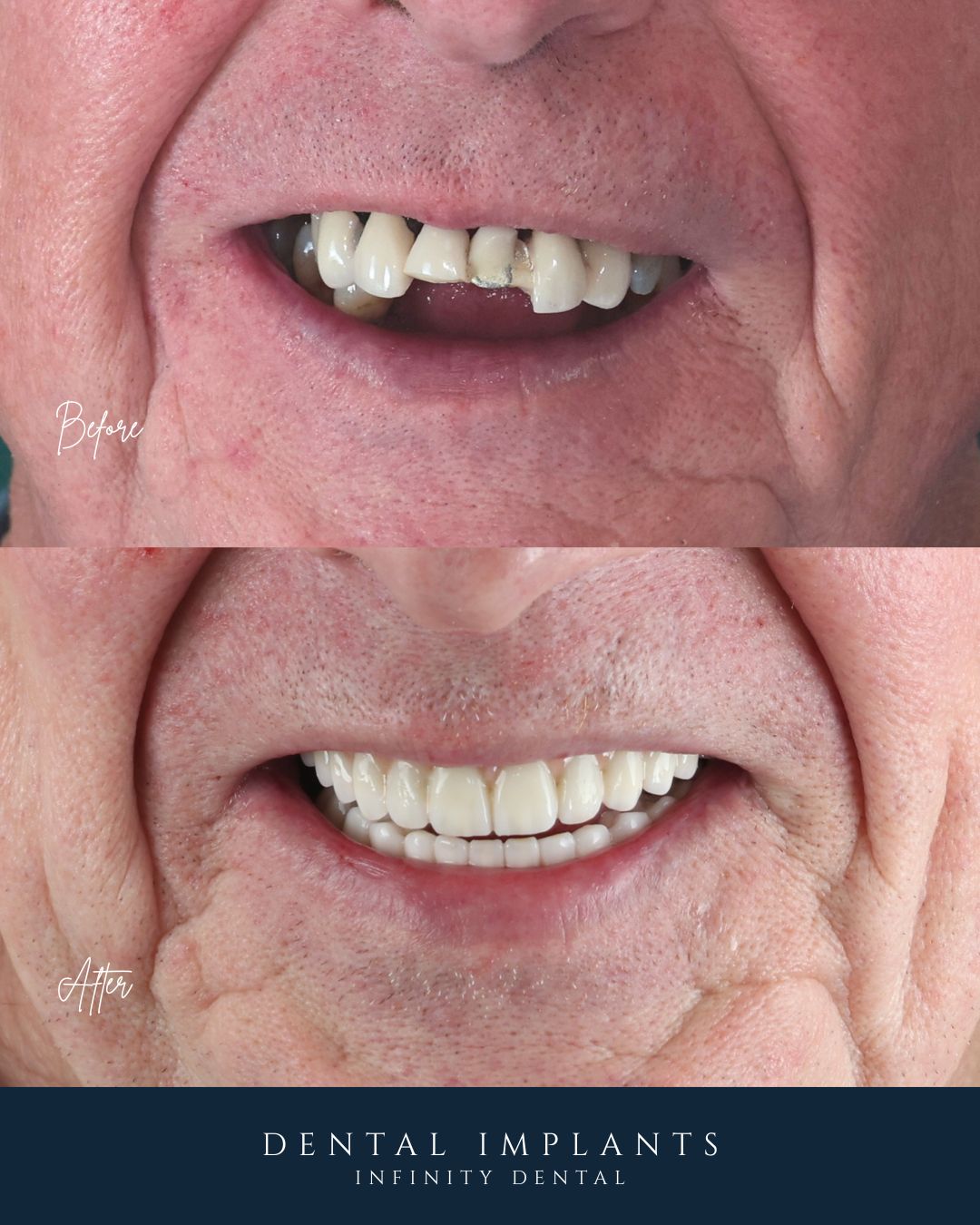 That moment became the turning point. It pushed him to start thinking seriously about fixing his teeth properly, rather than continuing to manage loose teeth and dentures.