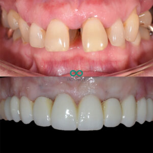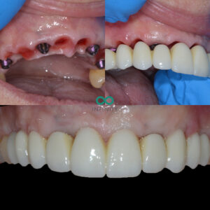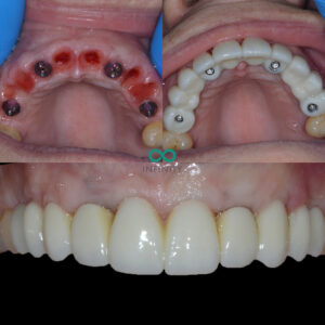 During the treatment we provided our patient with fixed teeth from the very beginning of her treatment plan. She never spent any time without teeth. In fact, on the very same day that she had her teeth removed, we provided her with fixed dental implant supported teeth.